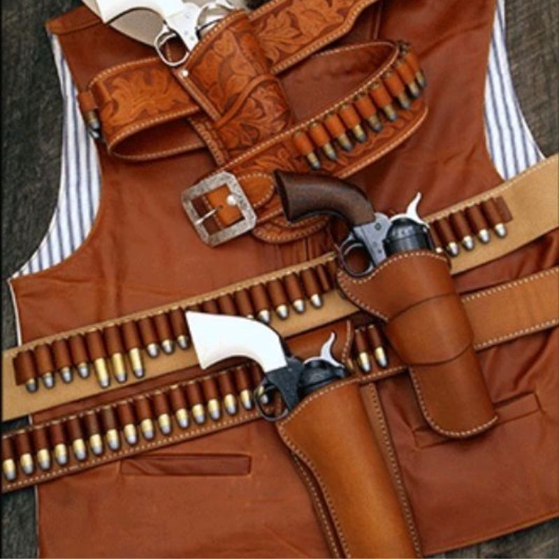 Step into the Wild West with our handcrafted leather gun holster belt. Designed for style and functionality, it features secure bullet loops, a quick-draw holster, and an adjustable fit. Perfect for cowboy action shooting, cosplay, or collectors who value tradition and rugged charm.